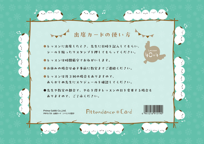 ふわふわのシマエナガが団子のように集まったかわいい出席カードです。